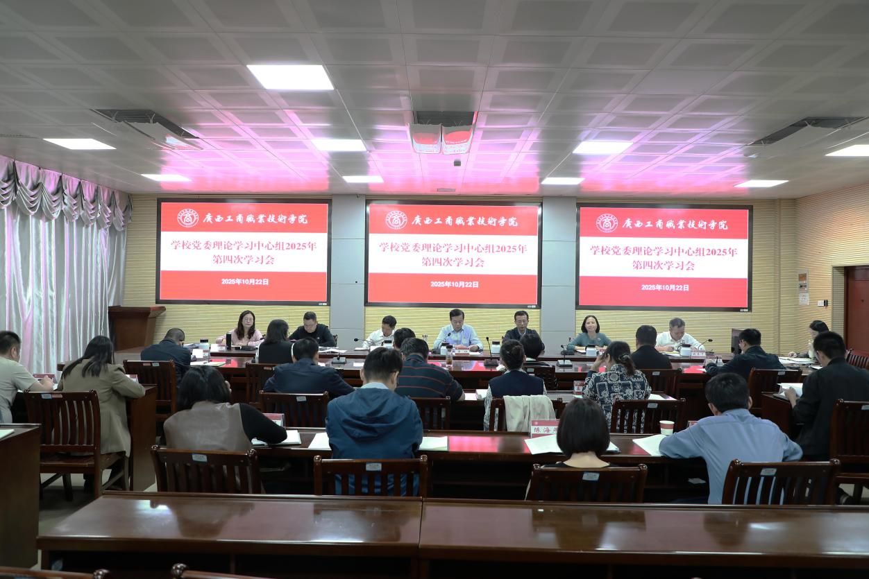 10月22日,学校召开党委理论学习中心组2025年第四次学习会,重点围绕深入学习领会习近平总书记关于广西工作论述的重要要求、深入学习领会习近平总书记关于铸牢中华民族共同体意识的重要论述、深入学习领会《习近平谈治国理政》第五卷等开展学习研讨。学校党委书记李维主持会议。