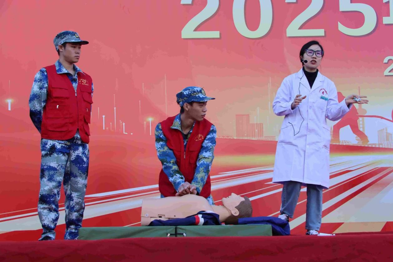 疏散演练后,现场开展了一系列丰富实用的安全主题活动,组织了校园防暴演练,并特别邀请消防宣传员,为学校师生讲解消防器材的使用方法、火灾的危险性、防火的应对与逃生自救等知识。并现场示范使用灭火器的使用方法,在实操体验中,通过让学生自己体验灭火器的使用方式,使其掌握正确的灭火方法和灭火技巧。组织灭火器规范使用实操演练锤炼技能,增设消防模拟逃生屋沉浸式体验强化感受。医护人员现场为大家科普相关急救知识,强调急救“黄金四分钟”的重要性,现场模拟心肺复苏操作演示。