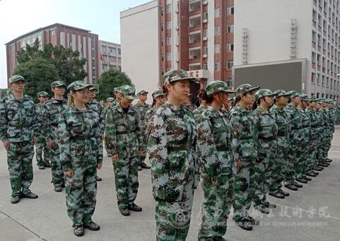 图为营销2103班的同学们在站军姿