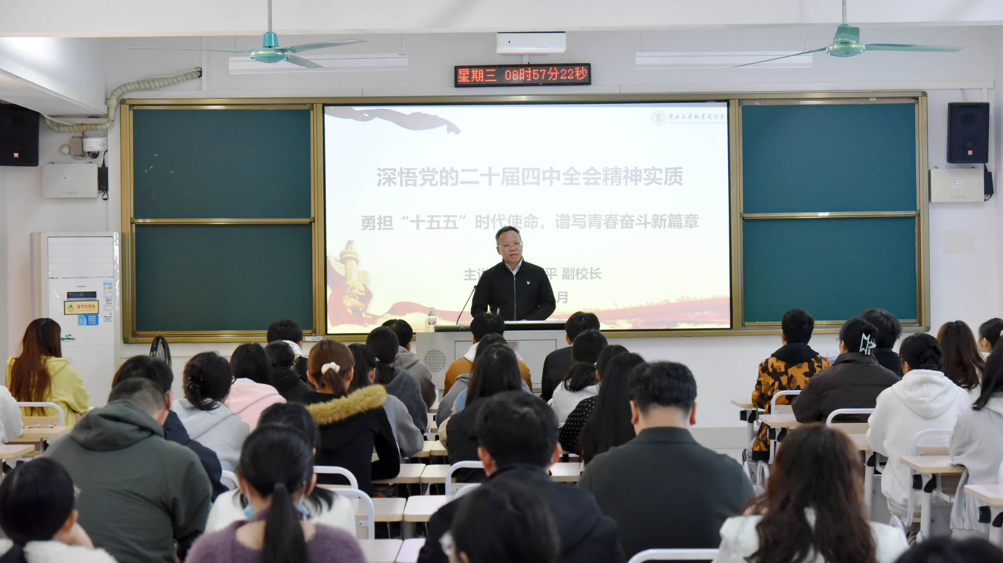 11月24日,学校校长刘进在鹏飞校区为青年团员代表开展党的二十届四中全会精神专题宣讲。本次宣讲聚焦党的二十届四中全会精神,系统回顾“十四五”时期我国的辉煌成就,展望“十五五”规划前景,并结合学校育人目...