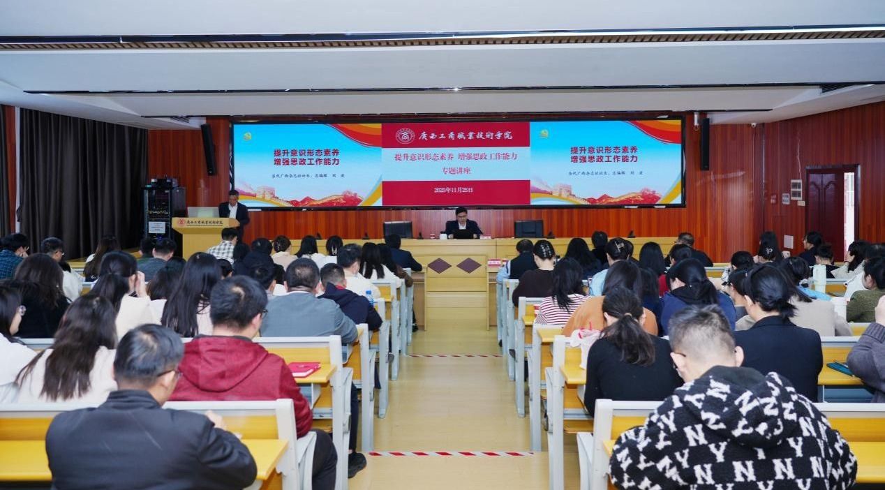 为深入贯彻落实立德树人根本任务,充分发挥思政课堂铸魂育人核心功能,2025年11月21日,学校副校长陈宁春深入思政课堂,为广告2401班、广告2402班学子讲授专题思政课,并开展思政课听课评课活动。陈宁春副校长为...