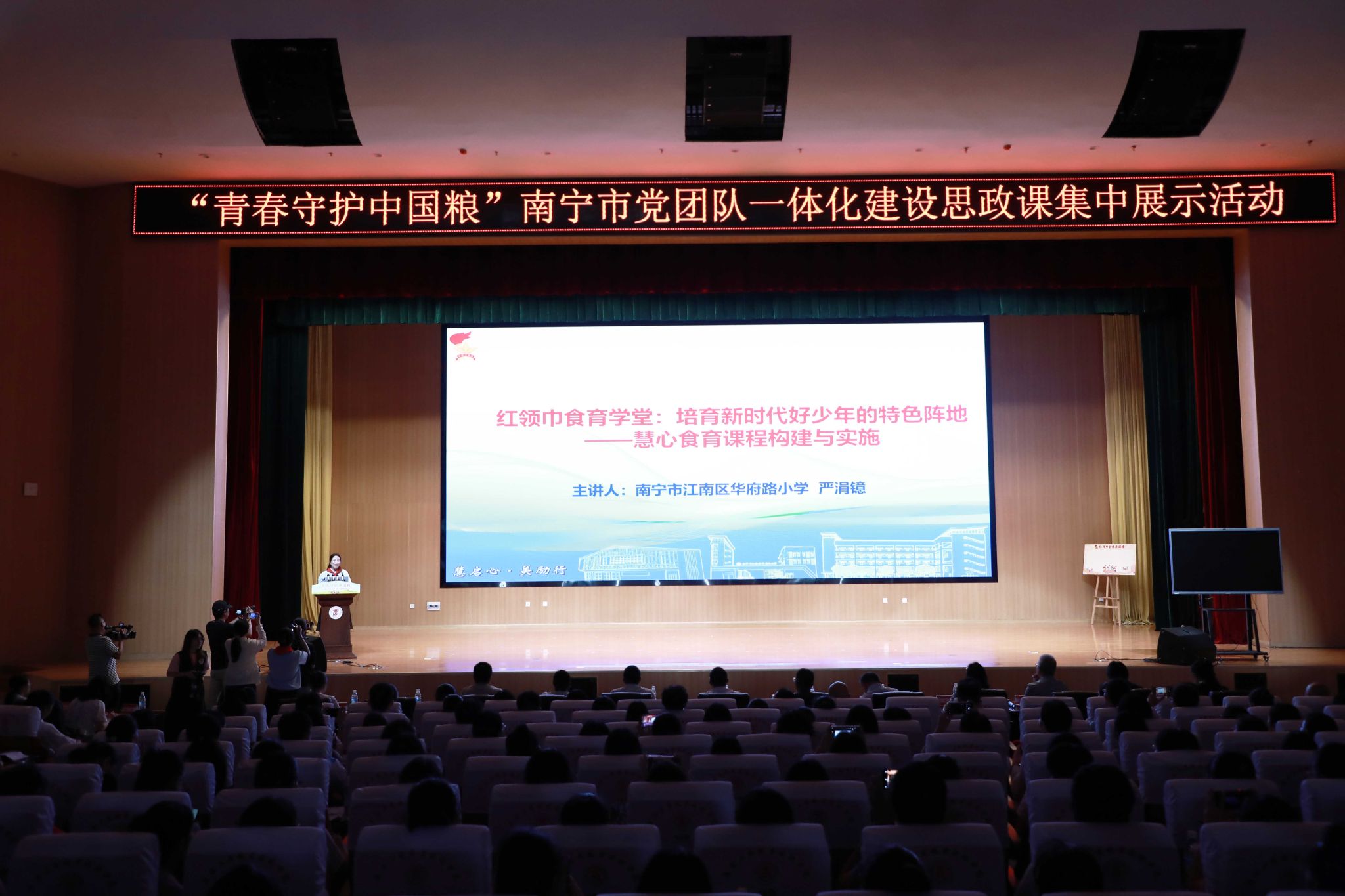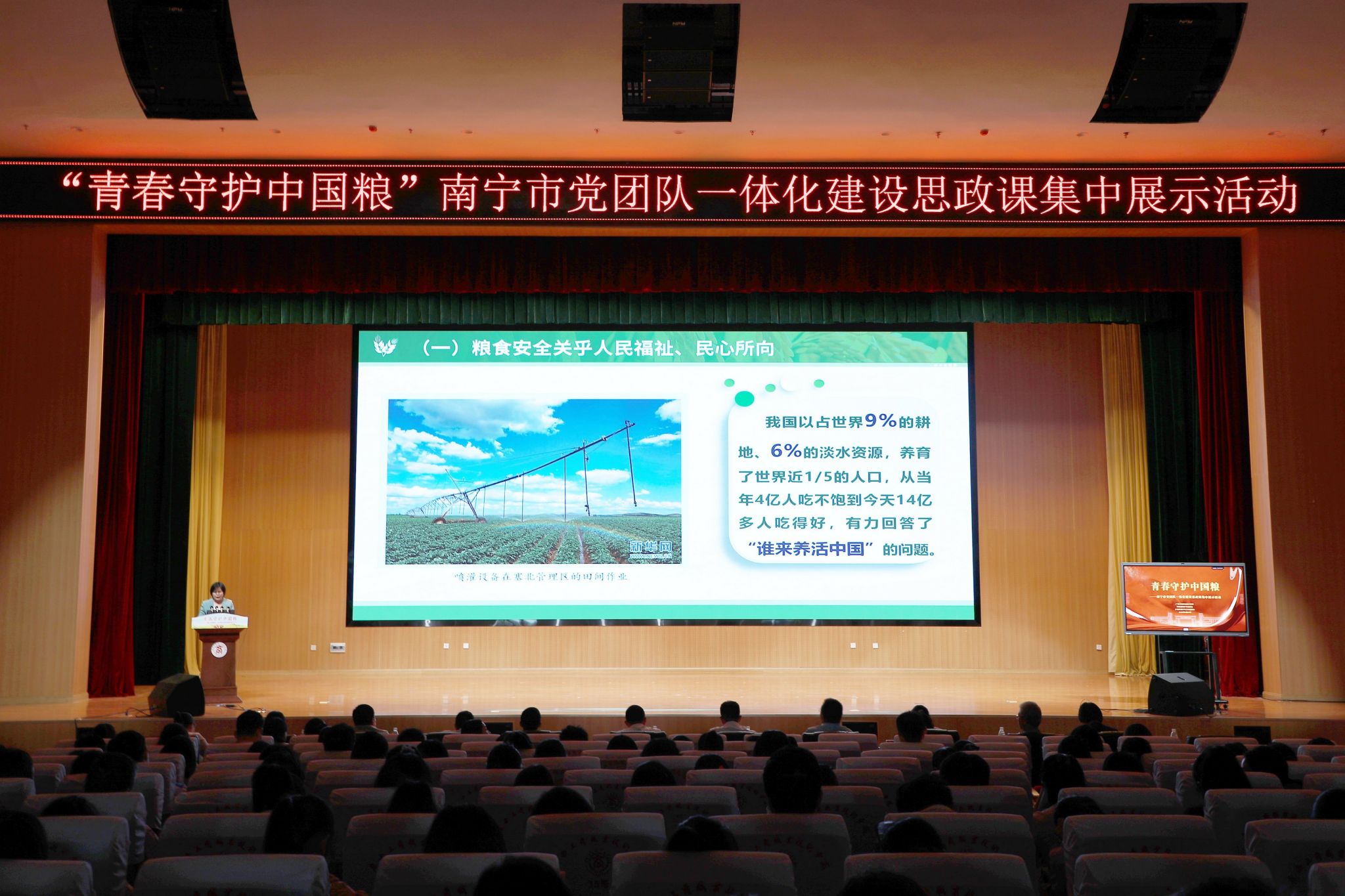 示范课展示层层递进,覆盖党团队不同群体。南宁市武鸣区城厢镇第三小学大队辅导员刁晓慧老师执教的少先队队会课《红领巾守护中国粮》,通过生动活泼的互动形式,在少先队员心中播下珍惜粮食的种子;南宁市武鸣区民族中学团委书记韦雨贝老师主讲的《粮食安全,有我!——新时代青年团员的“粮”心使命》主题团课,紧密结合中学生的认知特点,激发团员青年以实际行动践行使命担当;我校林勇灵副教授则为大学生带来《守护粮食安全的青春担当》青春思政课,从宏观政策、科技兴粮、职业理想等多维度,引导青年学子将个人所学融入国家粮食安全战略。