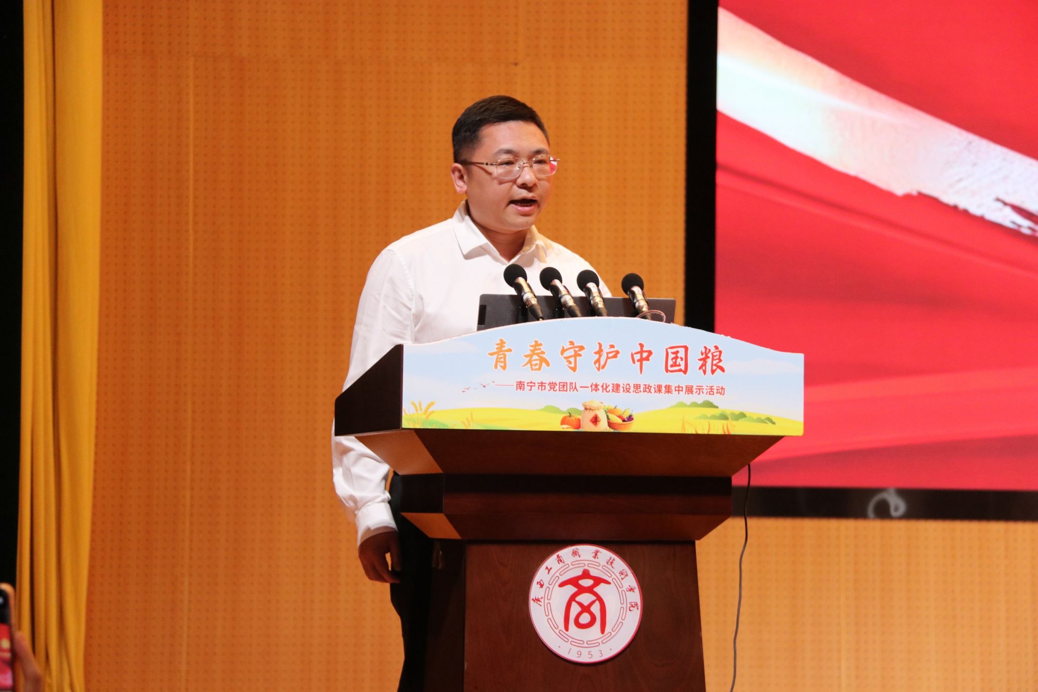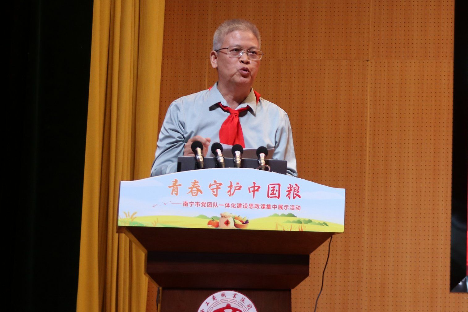共青团南宁市委员会书记、南宁市少工委主任陈国栋作总结讲话。他充分肯定本次集中展示活动的成效,并强调要持续深化校地合作,不断拓展党团队一体化育人新路径,引导广大青少年把惜粮之心转化为护粮之行。