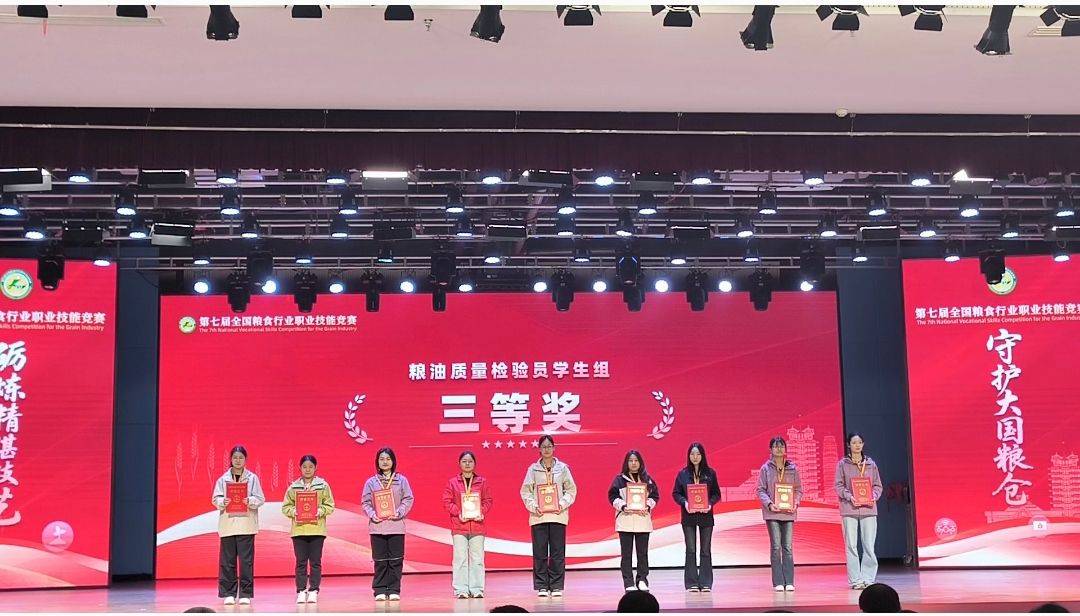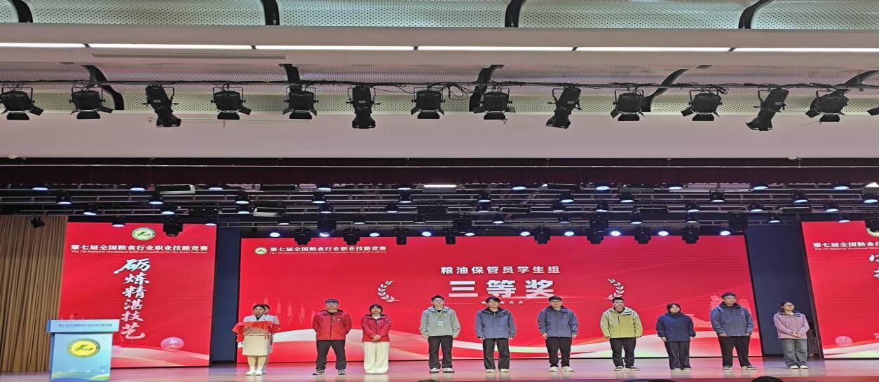 11月6日,第七届全国粮食行业职业技能竞赛圆满落幕,我校参赛学生石又文、王琼锐、马海雯凭借扎实的专业功底、精湛的实操技能与顽强的抗压能力,历经两天的实操比拼、理论考核等多轮角逐,最终从来自全国30个省(区、市)34支代表队的354名选手中脱颖而出,斩获(粮油)仓储管理员职业高职学生组三等奖(指导教师:韩蓉、张罡睿)和农产品食品检验员职业高职学生组三等奖(指导教师:李小媚、黄苏迪),学校荣获优秀院校奖。