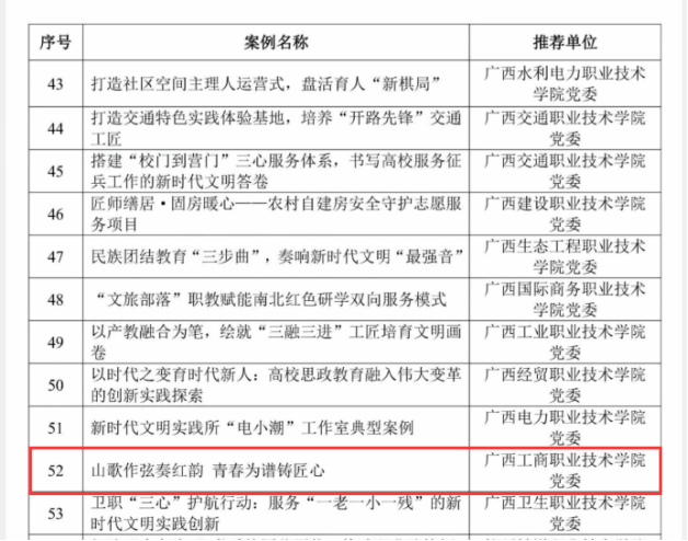 此次案例入选,是自治区党委教育工委对我校新时代文明实践工作成效的充分认可,也是对学校思政教育创新探索的有力激励。下一步,学校将以此为契机,持续深化文明实践阵地建设,不断丰富“山歌 +”育人内涵与形式,着力打造可复制、可借鉴、可推广的高校思政教育创新示范样本,为培养担当民族复兴大任的时代新人、服务地方经济社会高质量发展贡献更大力量。