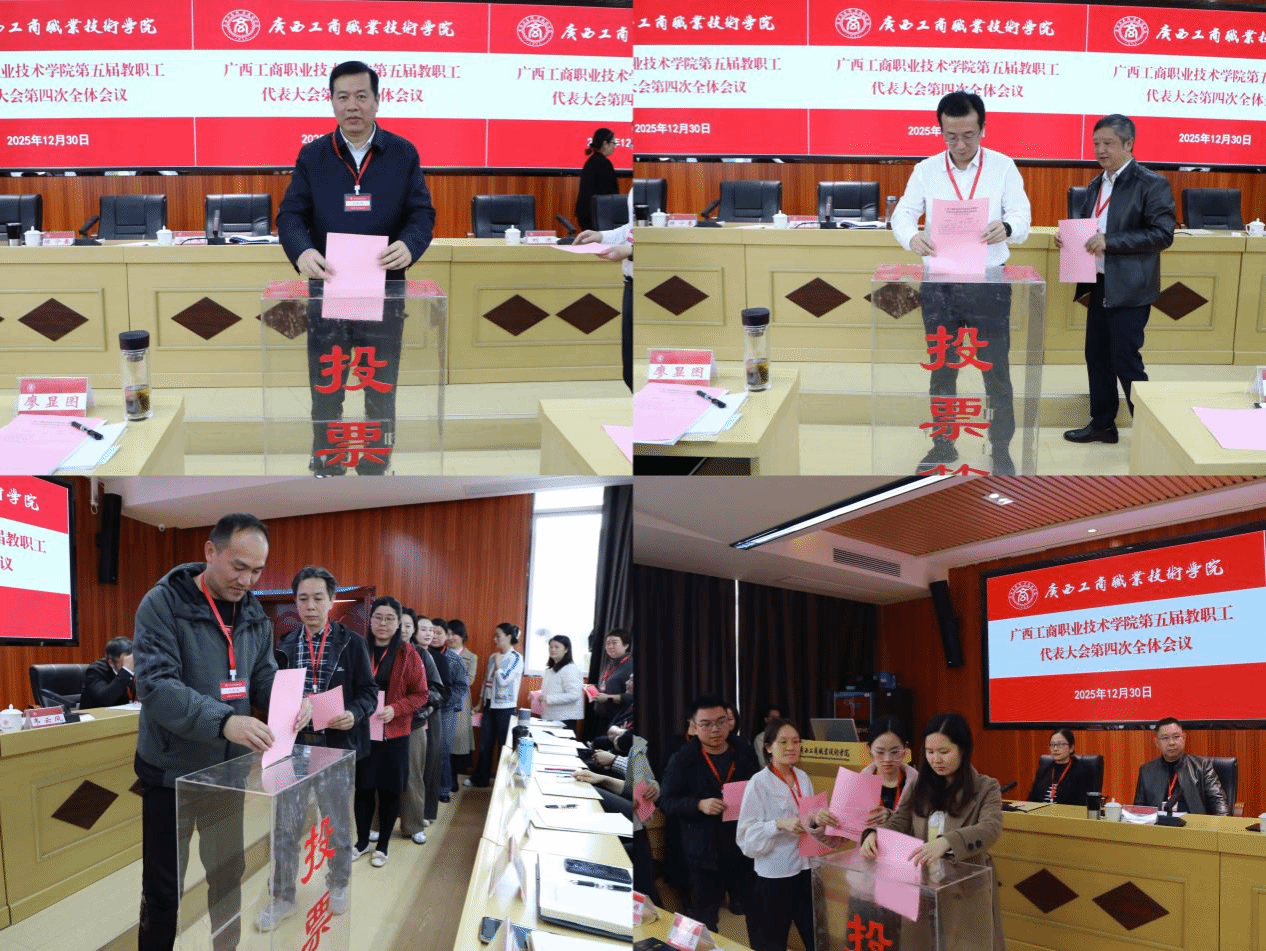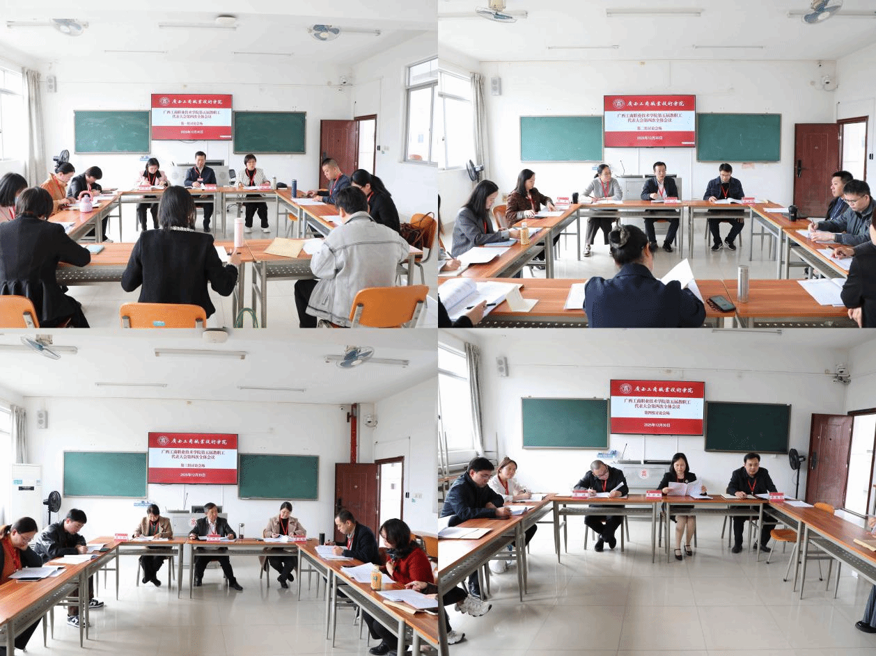 12月30日,学校在鹏飞校区召开第五届教职工代表大会第四次全体会议。学校党委书记李维,党委副书记、校长刘进,党委副书记安仲文,党委副书记、纪委书记韦云凤,副校长陈宁春,副校长阙勇平,副校长郑华,来自全校各部门各单位的教代会代表、列席人员参加会议。