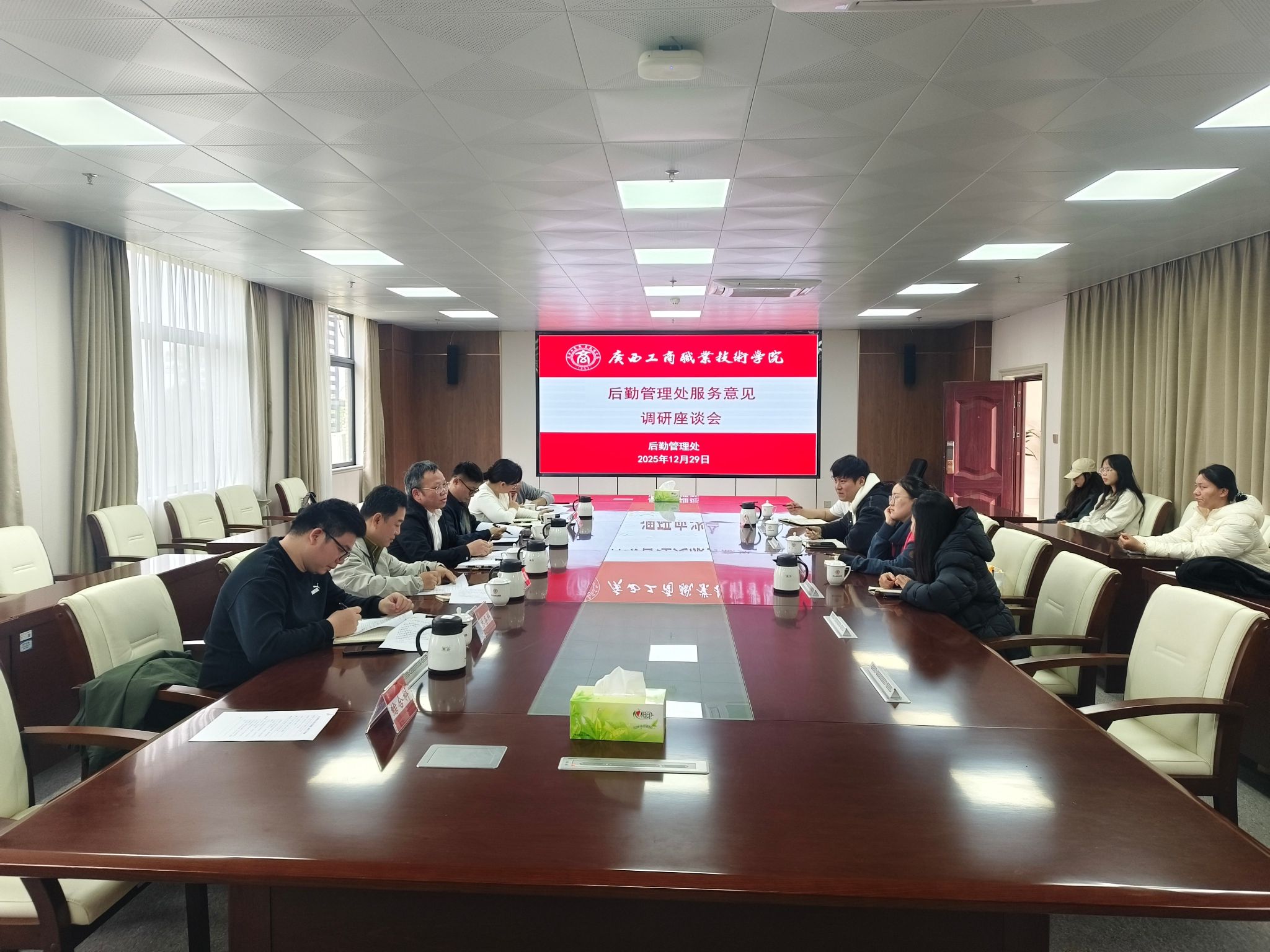 为持续提升后勤服务保障水平,广泛听取师生意见建议,12月29日,学校副校长阙勇平在武鸣校区主持召开后勤服务意见调研座谈会。后勤管理处处长林昆荣、安全稳定工作处副处长谭爵玺、后勤相关科室工作人员,以及来自经贸与康旅学院、财金学院的师生代表共同参加了会议。