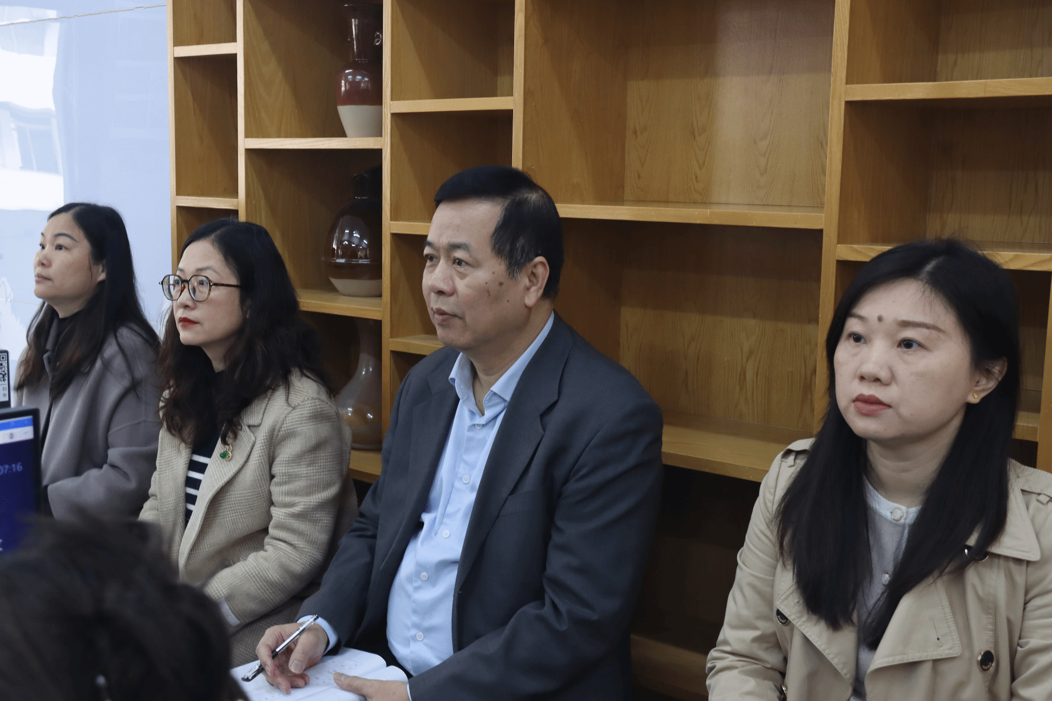学校领导分别带队走进智慧设计学院、通识教育学院、人工智能学院、财金学院、会计学院、粮油与管理学院、经贸与康旅学院等,走进不同年级、不同专业,听取了《商业空间设计(毕业设计)》《心理健康教育2》《中小企业网构建》《影视制作》《财务管理实务》《内部控制与风险管理》《财务机器人应用》《企业财务管理》《储粮微生物》《食品营养与健康》等课程。学校领导认真聆听多位教师的授课内容,梳理总结课堂流程、互动环节与教学成效,课后与任课教师沟通交流,在肯定大家教学态度与工作成效的同时,围绕课堂组织、教学策略优化等方面提出针对性改进建议。