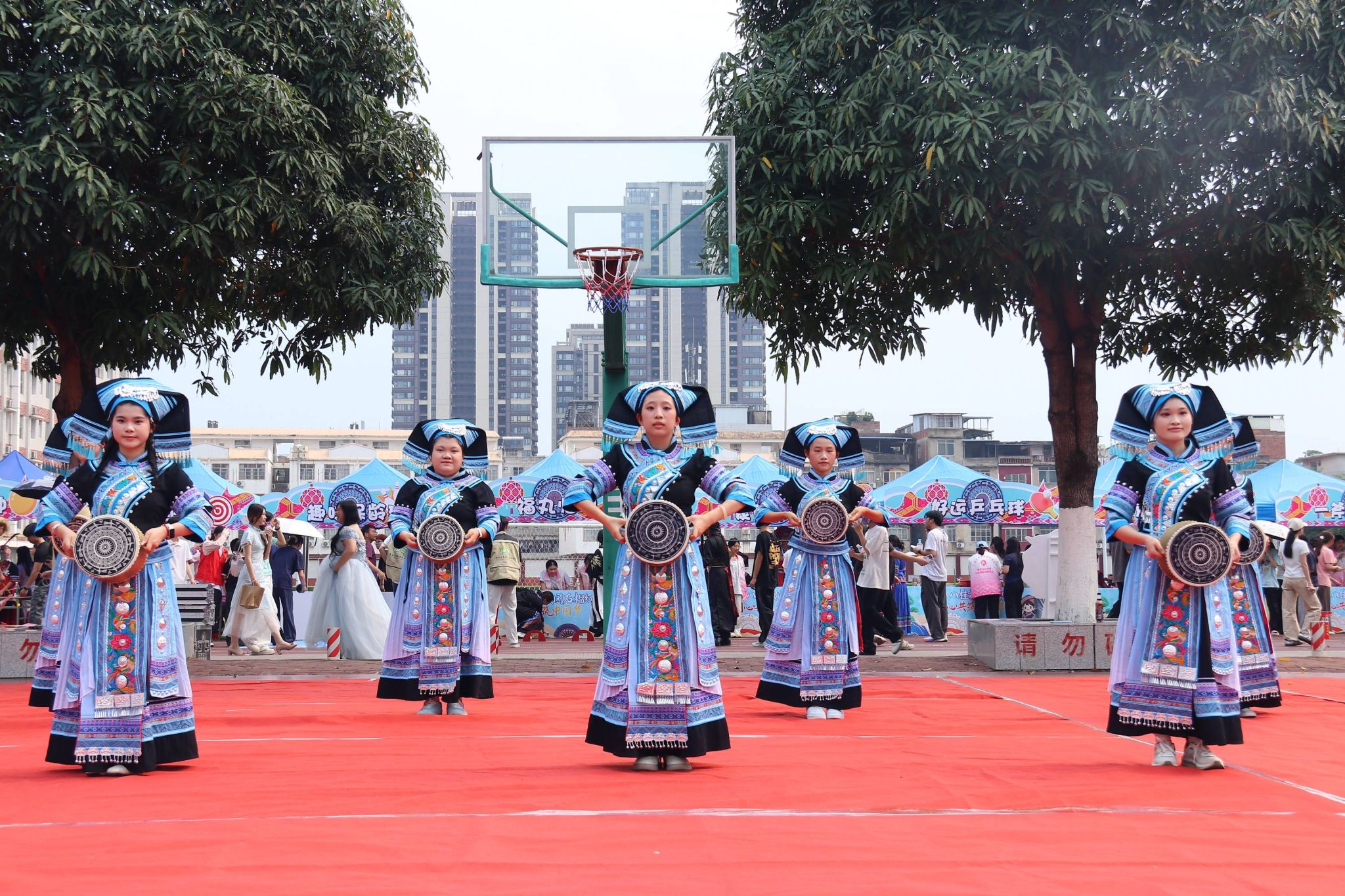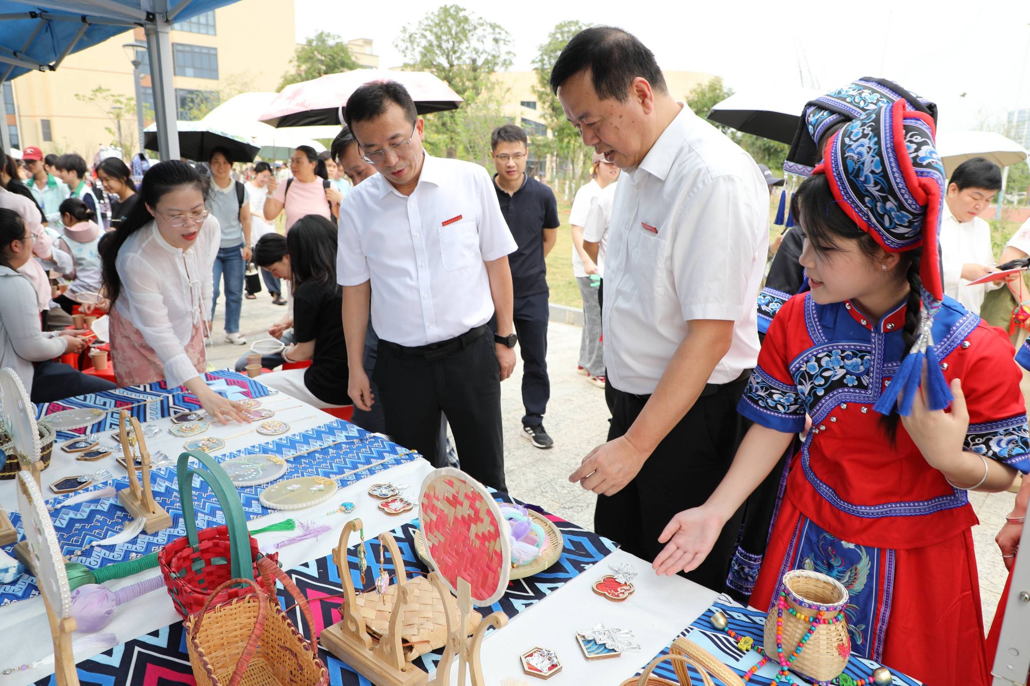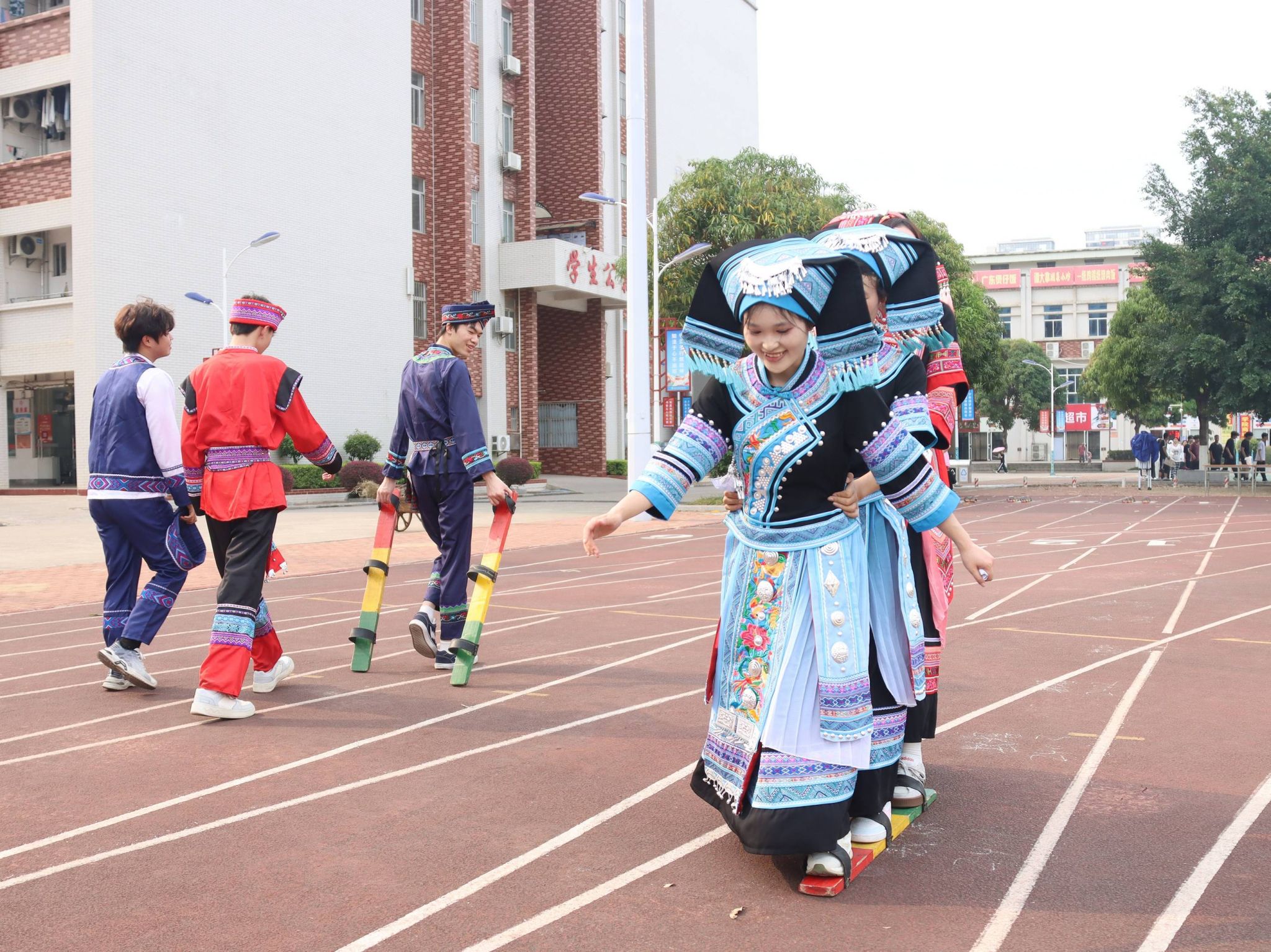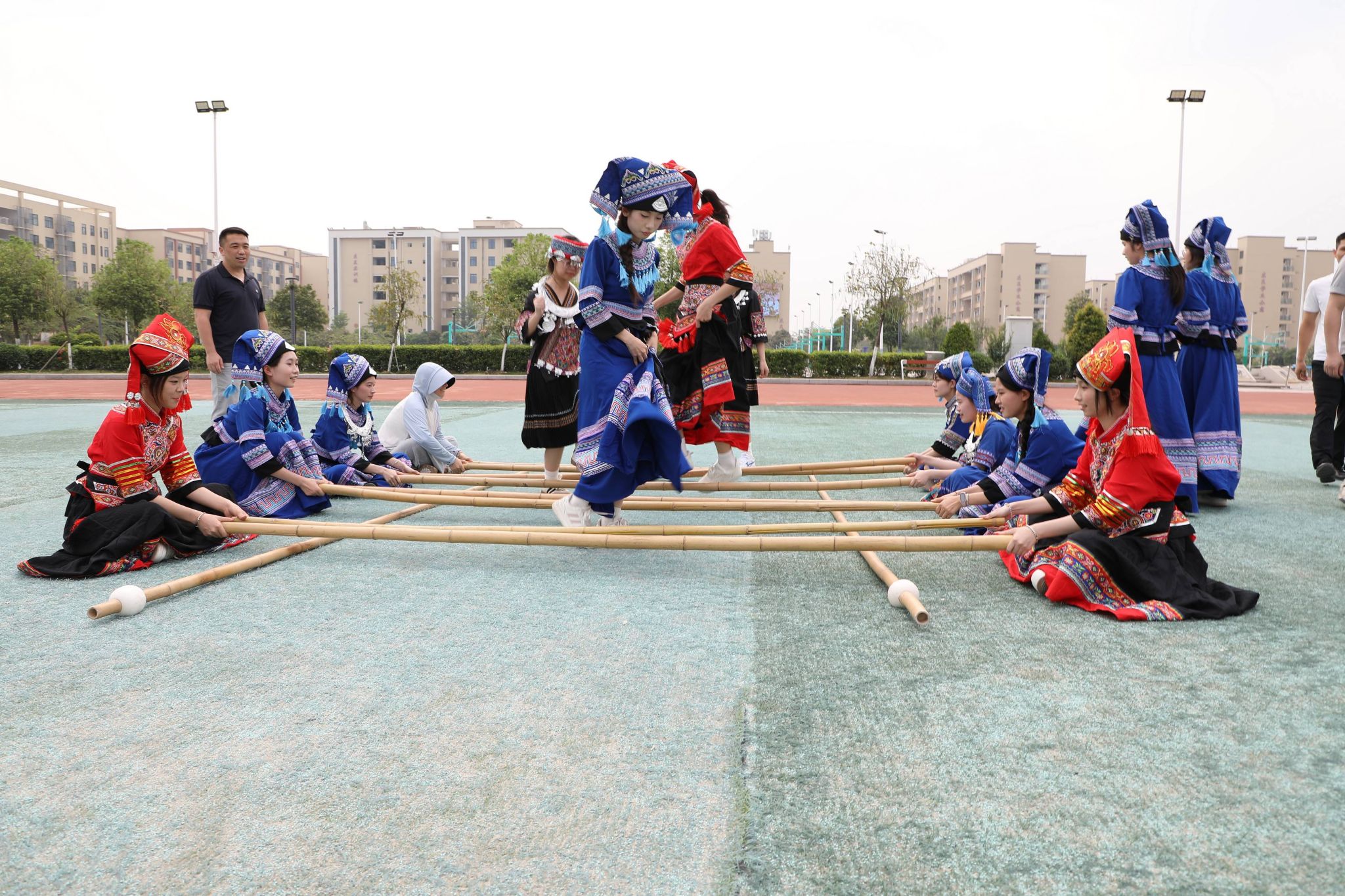 本次活动,学校紧紧围绕铸牢中华民族共同体意识主线,精心打造了赏·民族歌舞、品·民族美食、赛·民族体育、创·民族工艺“四大板块”活动内容。组织民族歌舞快闪表演,展现各民族文化的独特魅力;设置五色糯米饭、红鸡蛋、艾叶粑、油茶等特色美食体验区,以舌尖为媒,让师生品味地道的民族饮食文化;举办高杆抛绣球、板鞋竞速、竹竿舞、背篓绣球及滚铁环等传统体育项目,让师生在竞技与协作中感受民族体育的活力与趣味;开设扎染、剪纸、漆艺、绣球制作、簸箕画、香囊缝制等手作工坊,让师生亲身体验指尖上的非遗魅力。通过举办一系列活动,力求展现各民族优秀传统文化与独特风情,为各族师生搭建加深了解、增进感情、互学互鉴的平台。