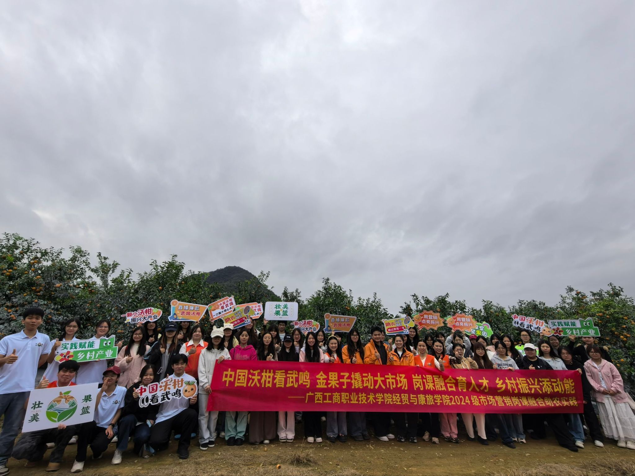 为深化岗课融合育人模式,将课堂理论与行业实践深度融合,切实提升市场营销专业学生的实践应用能力,12月23日,经贸与康旅学院市场营销专业教师带领2024级市场营销专业5个班级学生前往南宁武鸣区沃柑果园基地开展实地调研,沉浸式探寻沃柑产业发展密码。本次活动是2024级市场营销专业《岗课融合实践》课程的重要教学环节,旨在通过真实产业场景,提升学生市场调研、内容创作与营销策划能力。