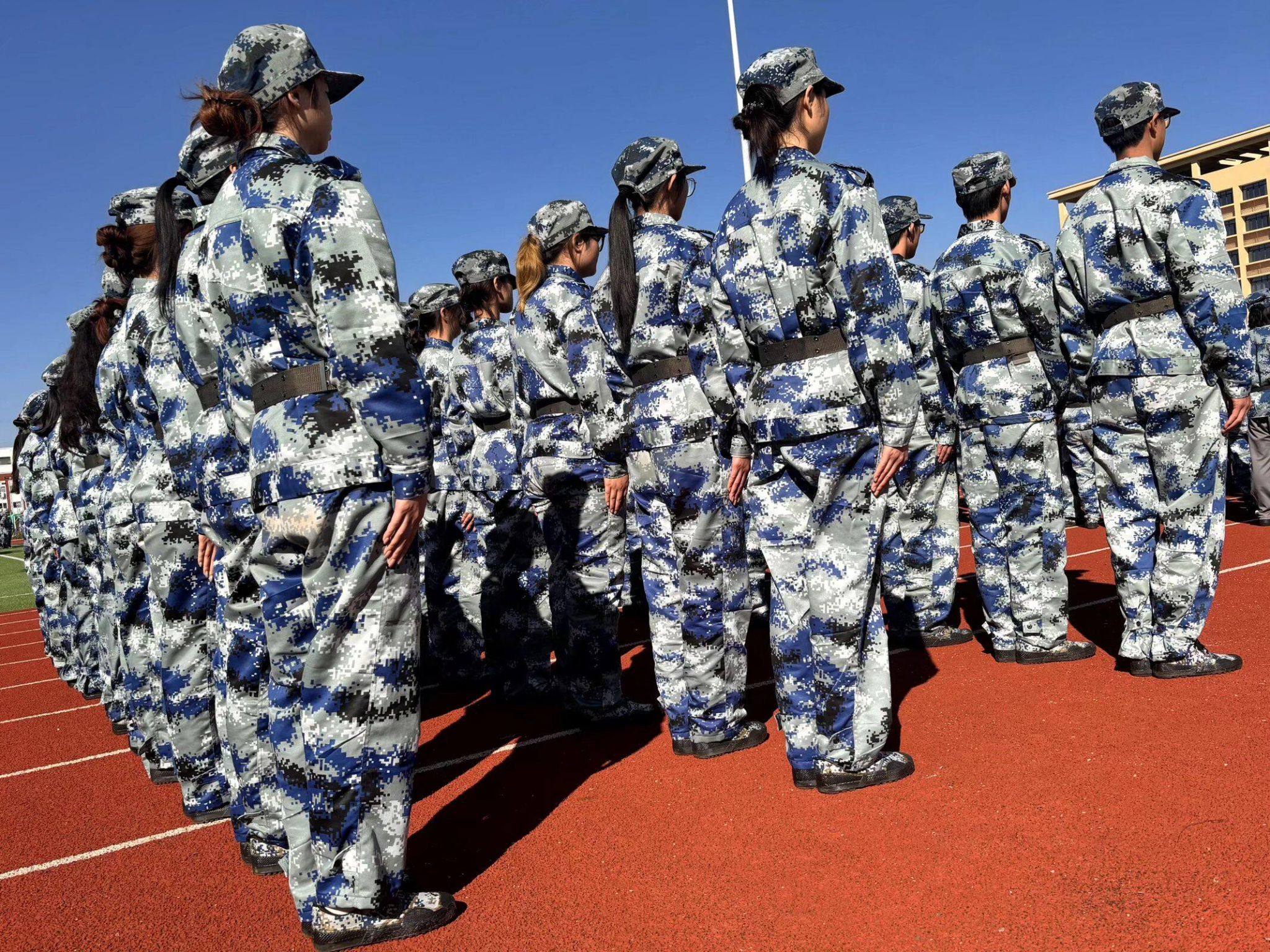 风卷过会信2501班的方阵,迷彩服的衣角晃了晃,衬得那一排排挺直的脊梁,像烈日下扎了根的树。