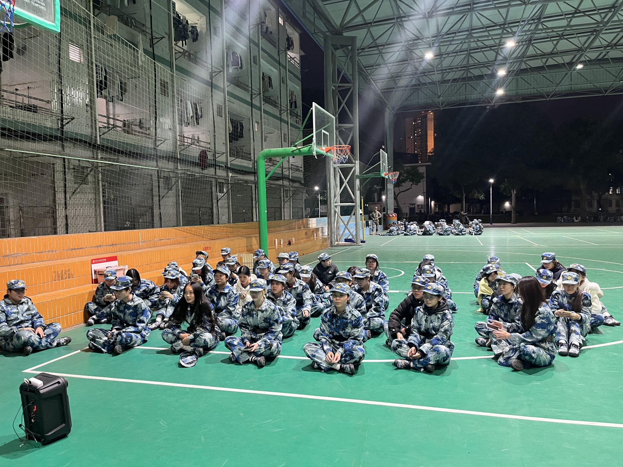 2025年11月21日晚,数会2504班同学在风雨球场开展了一场充满激情与力量的军歌练习活动。夜色渐深凉风习习,但同学们的热情丝毫不减,洪亮的歌声在夜空中回荡,展现出青春的朝气与集体的凝聚力。