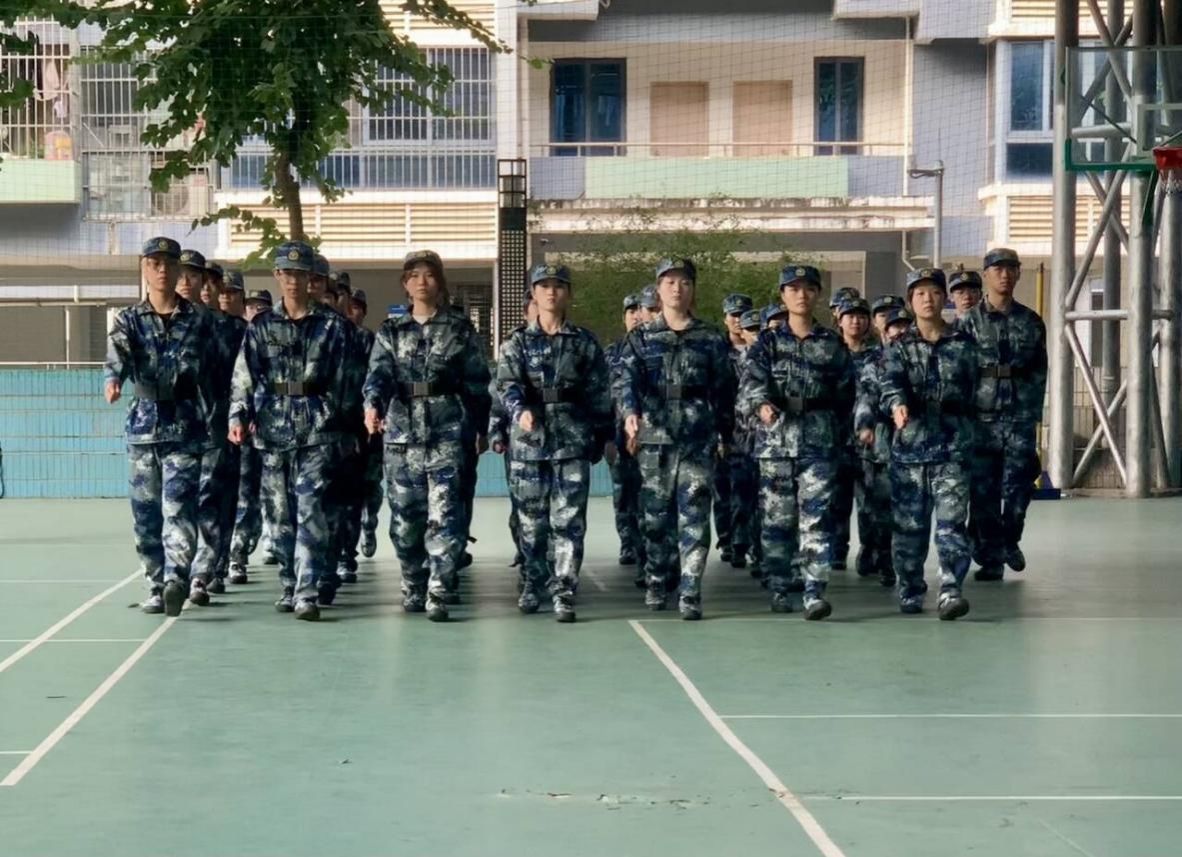 正步走要求抬腿稳、踢腿直,这并不容易:有人踢得过高,有人落脚过轻,有人站不稳晃来晃去,脚步声零零散散。教官一遍遍示范,用口令把节奏刻进我们的肌肉记忆。我们一遍一遍地练习,经过大家刻苦练习,正步终于有了“形”和“声”。