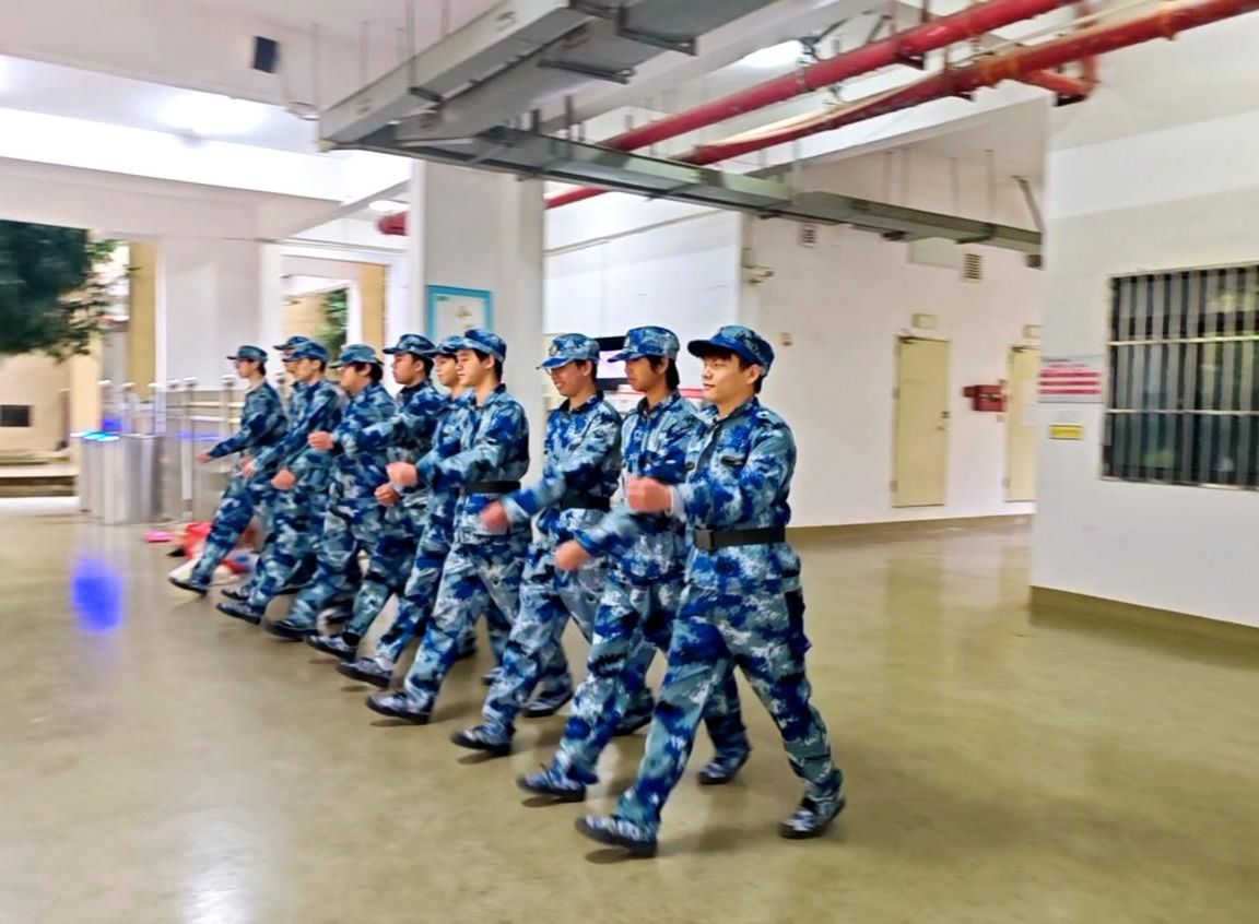 在当天的训练中,同学们先后进行了原地踏步和停止间转法等基础队列动作训练。教官对每个动作要领都进行了细致讲解和示范,从摆臂幅度到踏步节奏,从转体速度到靠脚力度,都严格要求、一丝不苟。同学们在反复练习中不断磨合,动作逐渐从生疏到熟练,从凌乱到整齐,展现出良好的训练效果和团队协作精神。当晚,班级还组织了充满军营特色的拉歌活动。在教官的指挥下,同学们分成不同方阵,此起彼伏的歌声、口号声响彻训练场,既缓解了白天训练的疲惫,又增强了集体凝聚力,展现了青年学子朝气蓬勃的精神风貌。