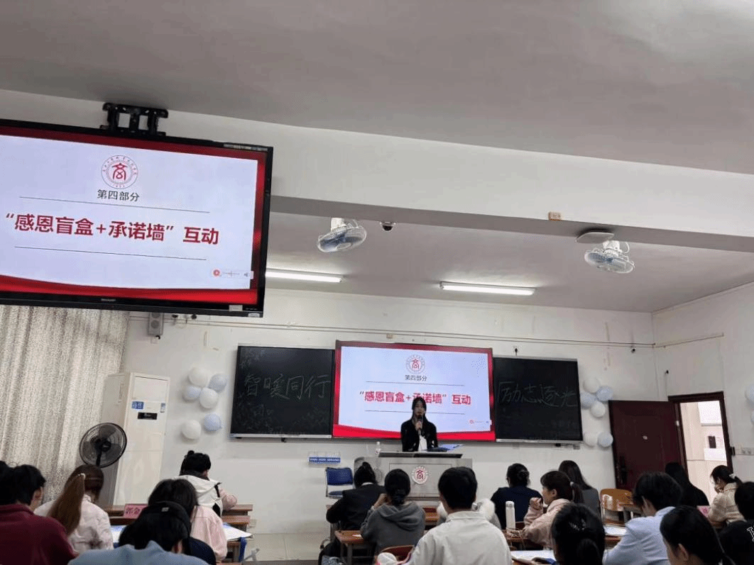 互动环节中。同学们收到了内含励志寄语与实践活动邀约的“励志盲盒”,并积极分享抽到的内容与当下感悟。大家在“感恩便利贴”上写下对国家、学校、学院的感激之情或对未来的具体承诺。这些满载真情的便利贴将被汇集张贴于“逐光承诺墙”,让文字见证初心,让行动践行约定。