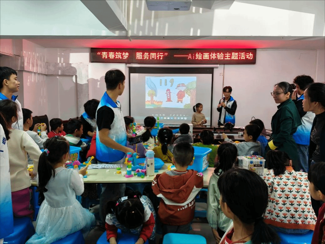本次活动围绕“AI绘画”主题,面向社区青少年设置“我的梦想”创作环节。现场气氛活跃,孩子们踊跃参与纸质绘画,勾勒出从奇幻动物到未来场景的丰富想象。在志愿者引导下,孩子们进一步学习使用“可灵”“豆包”“动画绘图”等AI工具,将静态画作转化为动态动画。活动室大屏上实时展示生成效果,小朋友们也积极分享创作思路,现场互动融洽。看到手绘角色“动起来”的生动画面,家长与孩子们纷纷表示赞赏。活动尾声,志愿者们为参与儿童分发纪念礼品,多位家长表达了对后续活动的支持与期待。