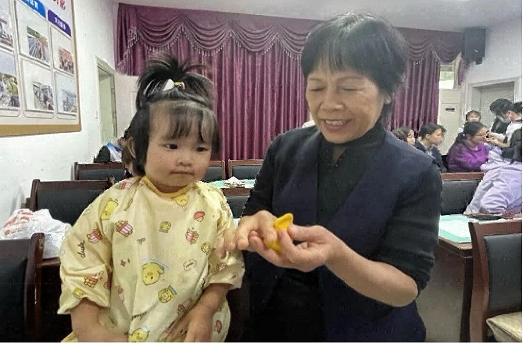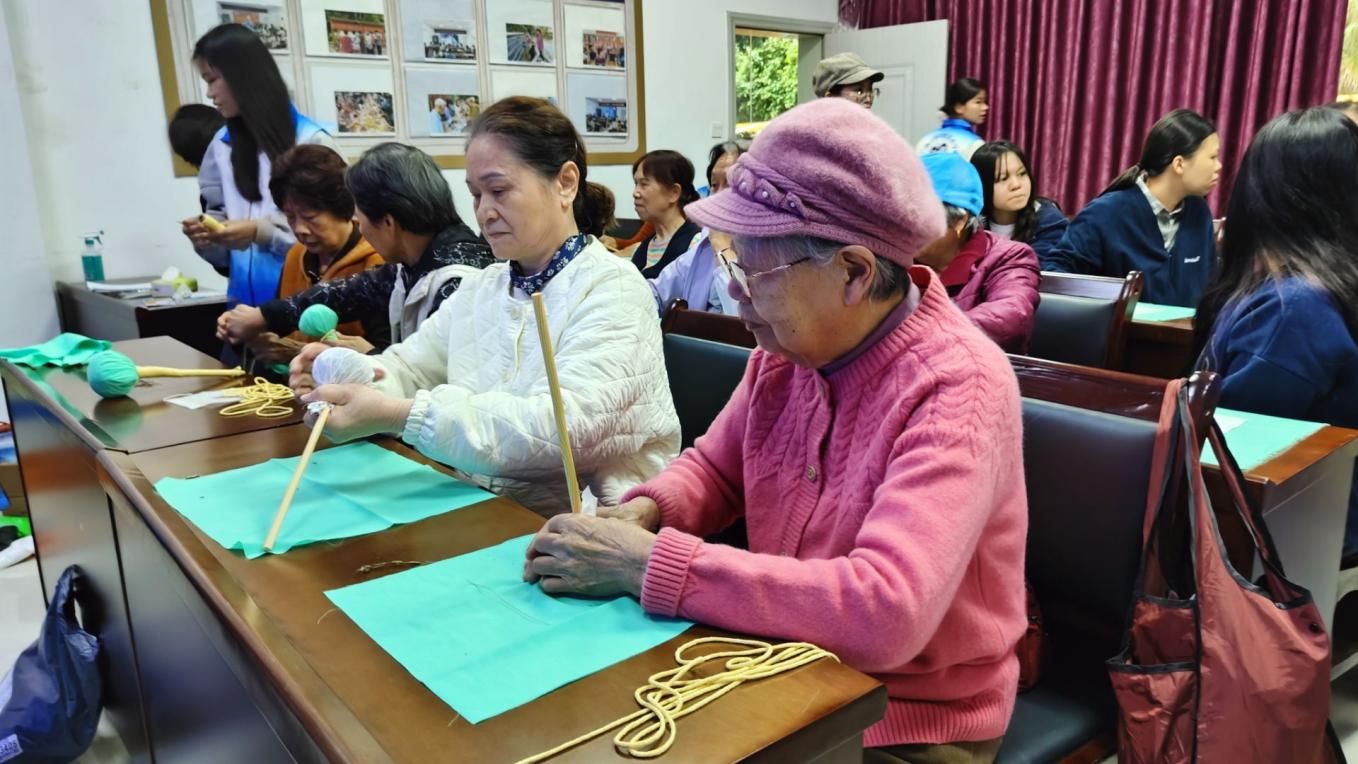 志愿者指导居民制作艾草锤