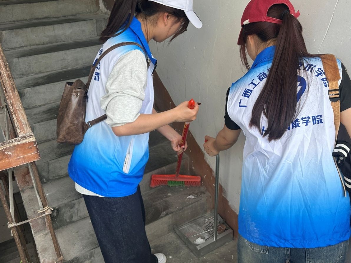 活动中,同学们有序分组,手持清洁工具,对社区公共区域及各单元楼道展开了细致打扫。大家认真清扫地面落叶、烟头等杂物,铲除楼道积尘,并逐一清理墙面张贴的广告。经过数小时的劳动,社区环境得到明显改善,公共空间更加整洁有序。。